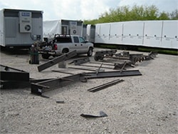 “Attached are some pictures of a mobile home frame that I cut up in less than 20 minutes with the 9″ saw that I bought from you. Had I used my torch, it would have taken much longer. I have used your saw to make plunge cuts in 1/4″ steel plate, to cut fireboxes from 1/4″ plate for barbeque pits. This saw is less expensive to use than my plasma cutter and much less expensive than buying a shear! I have had it for almost a year and don’t know how I did without it!