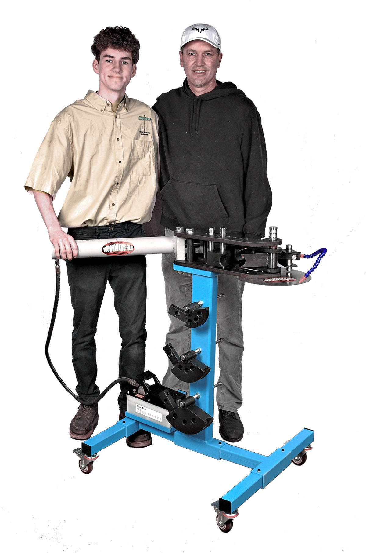 We have finally created an economical tube bending setup utilizing our popular WFB2 bender incorporating an air over hydraulic ram and pump. Includes rolling stand.