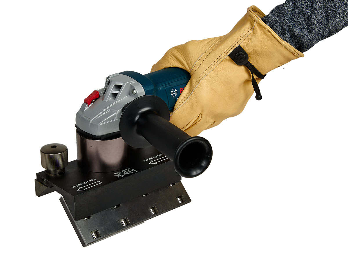 Our New Model 2000 Bevel Mill® is designed to complete fast 45° bevels on mild steel, aluminum and stainless steel. With a powerful and dependable German Bosch gear drive motor along with a ergonomic hand held design, this beveler is strong enough to provide a bevel up to 1/4” depth.