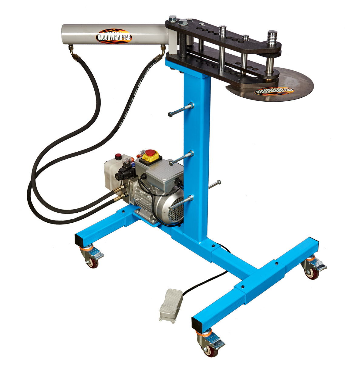 / Products / Pipe and Tube Fabrication Tools / Woodward Fab Pipe and Tube Benders / Hydraulic Tube & Pipe Bender / WFB2-EHP Electric/Hydraulic Power Tube Bender – 110V, Foot Pedal Control Stand with Casters, Compatible with Manual Tube and Pipe Bender Dies up to 2”