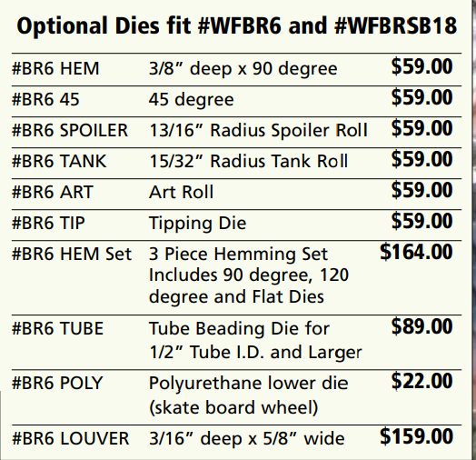 - The inclusion of six sets of dies (shearing die, round bead dies, and step dies) allows users to perform a wide variety of operations, such as creating floor pans, trunk pans, and firewall components, with ease and precision.